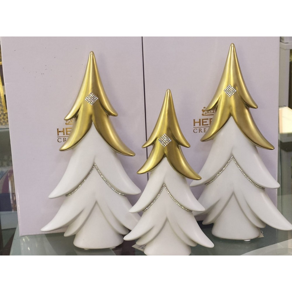 Albero in porcellana gres bianco/oro con strass 28 cm - HERVIT CREATIONS.