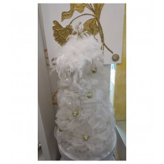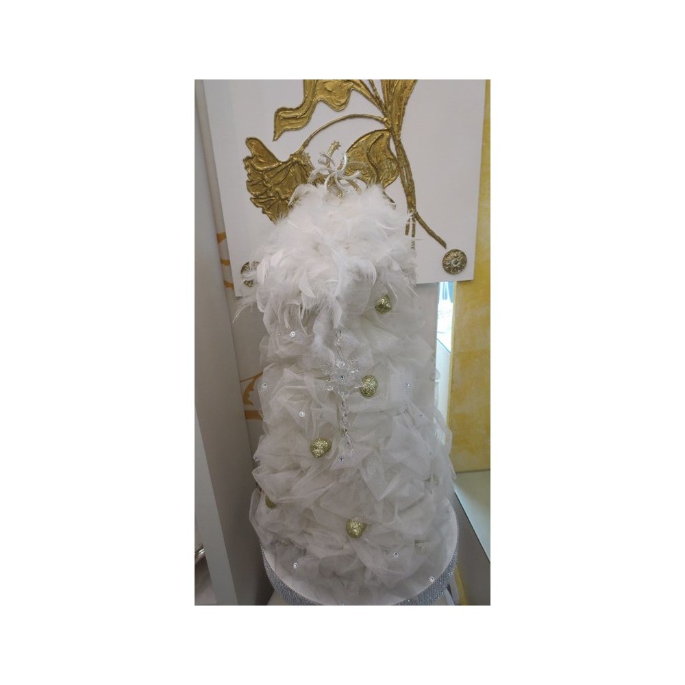Albero natalizio in tulle e piume bianche con strass - H 70 cm