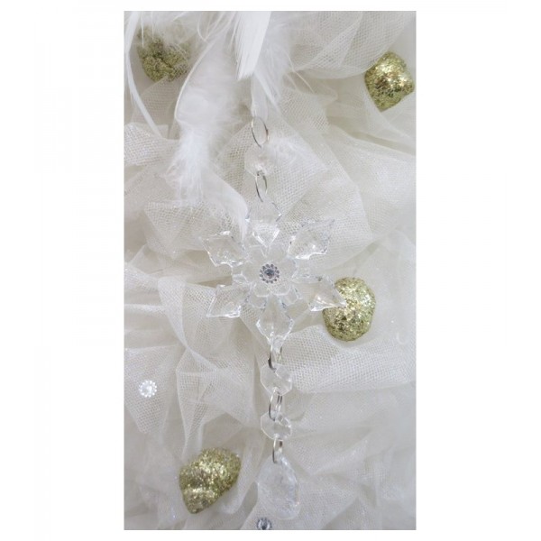 Albero natalizio in tulle e piume bianche con strass - 70 cm.