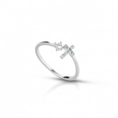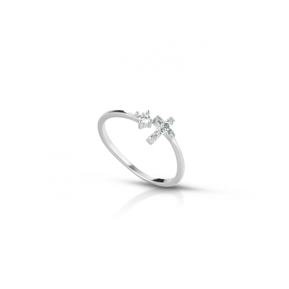 Anello con croce in argento 925 e zirconi regolabile - ONE GIOIELLI.