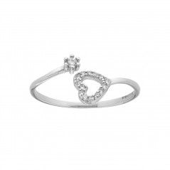 Anello aperto sulla parte superiore con accessorio a forma di cuore con zirconi bianchi incastonati e punto luce bianco
