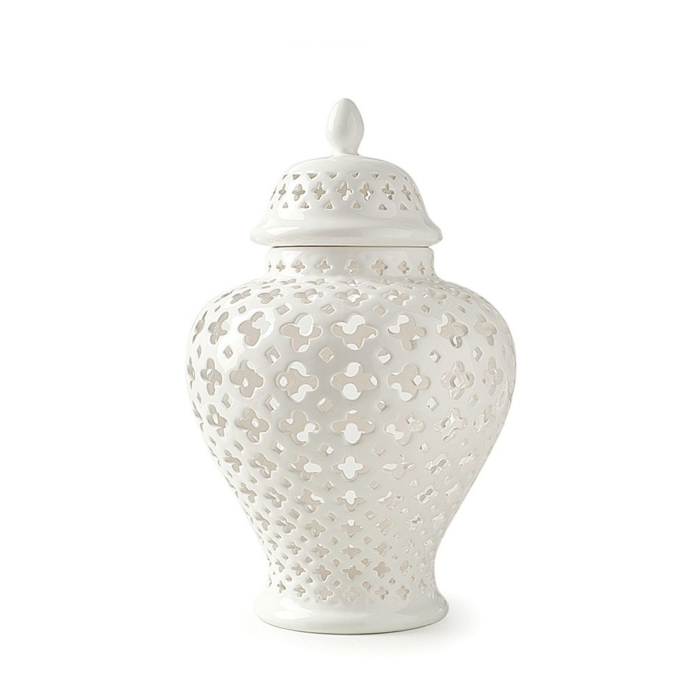 Anfora potiche in porcellana traforata con coperchio - HERVIT CREATIONS