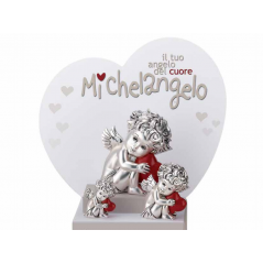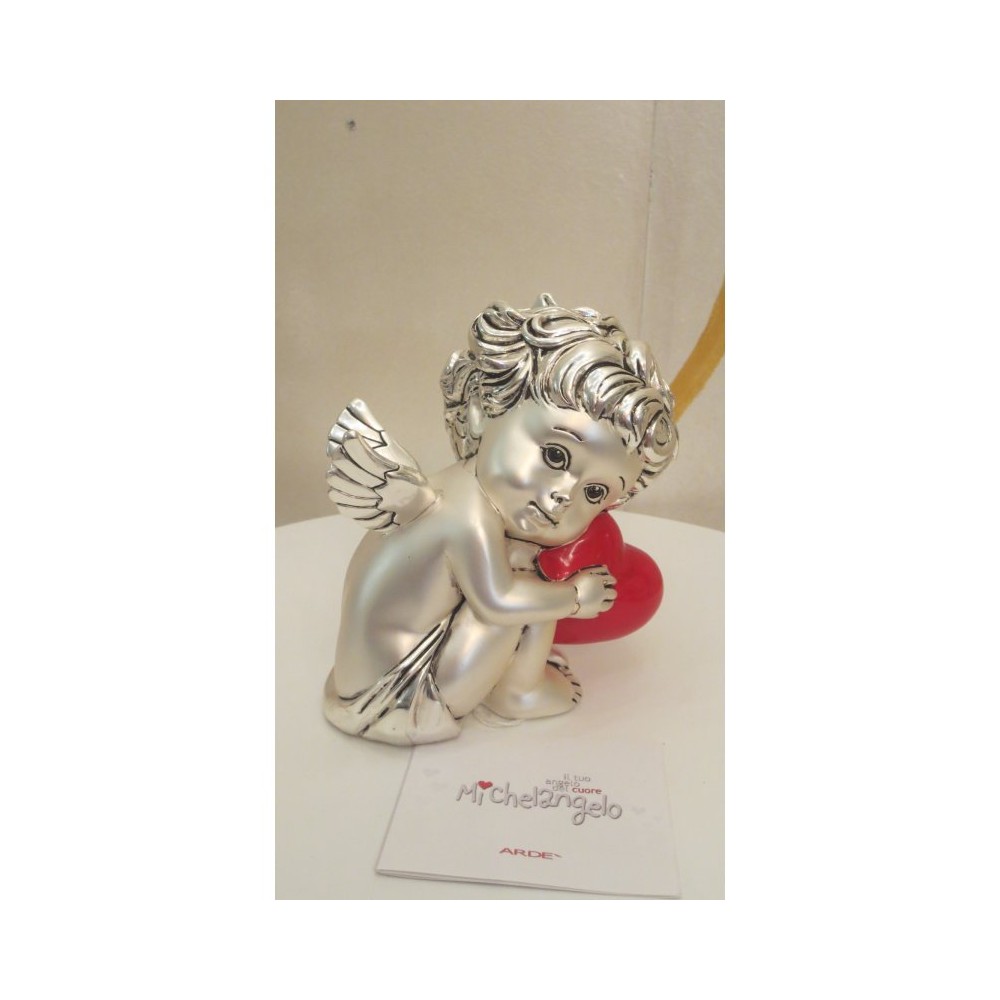 Angelo Michelangelo seduto cuore rosso in resina argentata12x12 cm - ARDE' ARGENTI.