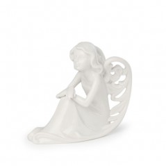 Angelo seduto in porcellana con ali traforate - HERVIT CREATIONS.