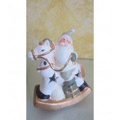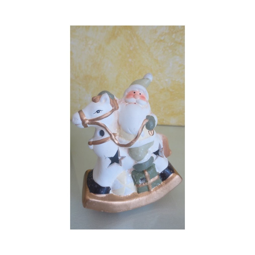 Babbo natale su cavallo a dondolo con luce a led 15 cm.