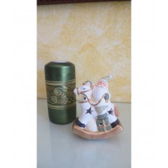Babbo natale su cavallo a dondolo con luce a led - 15 cm