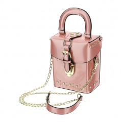 Bauletto in pvc Rosa laccato con manico e tracolla accessori in metallo oro 15 x 9,5 x 19 cm - HERVIT CREATIONS.