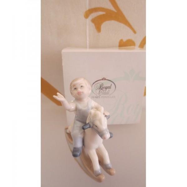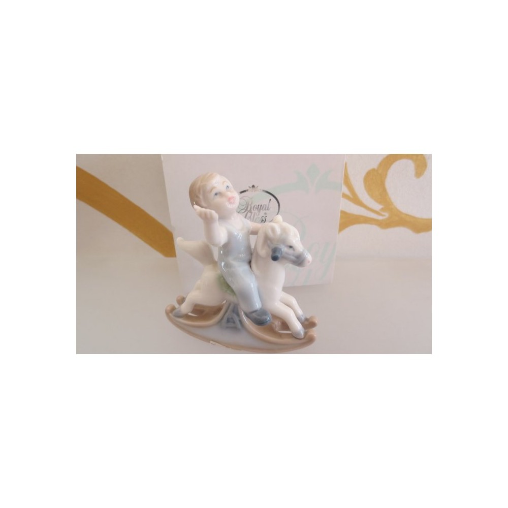 Bimbo su cavallo a dondolo in finissima porcellana 9 cm - ROYAL CLASS by Hervit.