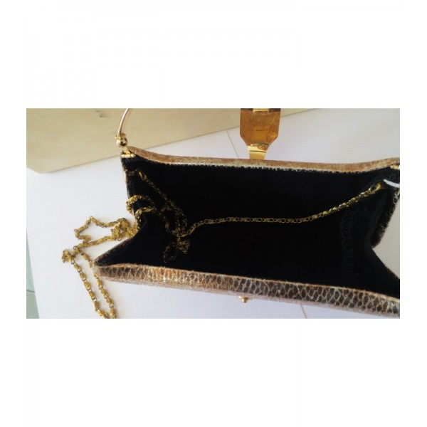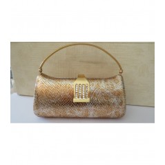 Borsetta cerimonia in ecopelle serpente Oro con chiusura gioiello in strass.