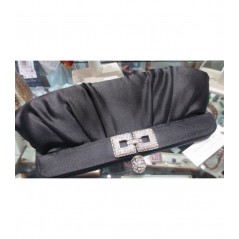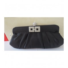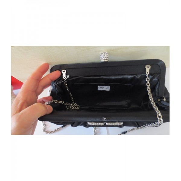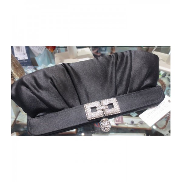 Borsetta cerimonia in raso Nero con chiusura gioiello in strass.