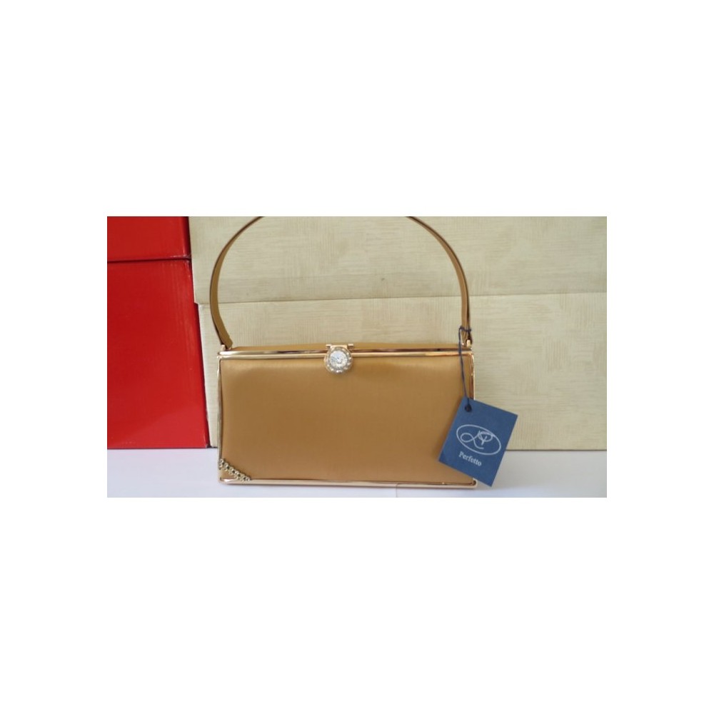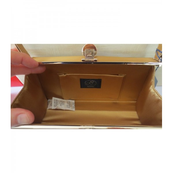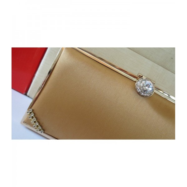 Borsetta cerimonia in raso Oro con chiusura gioiello in strass.