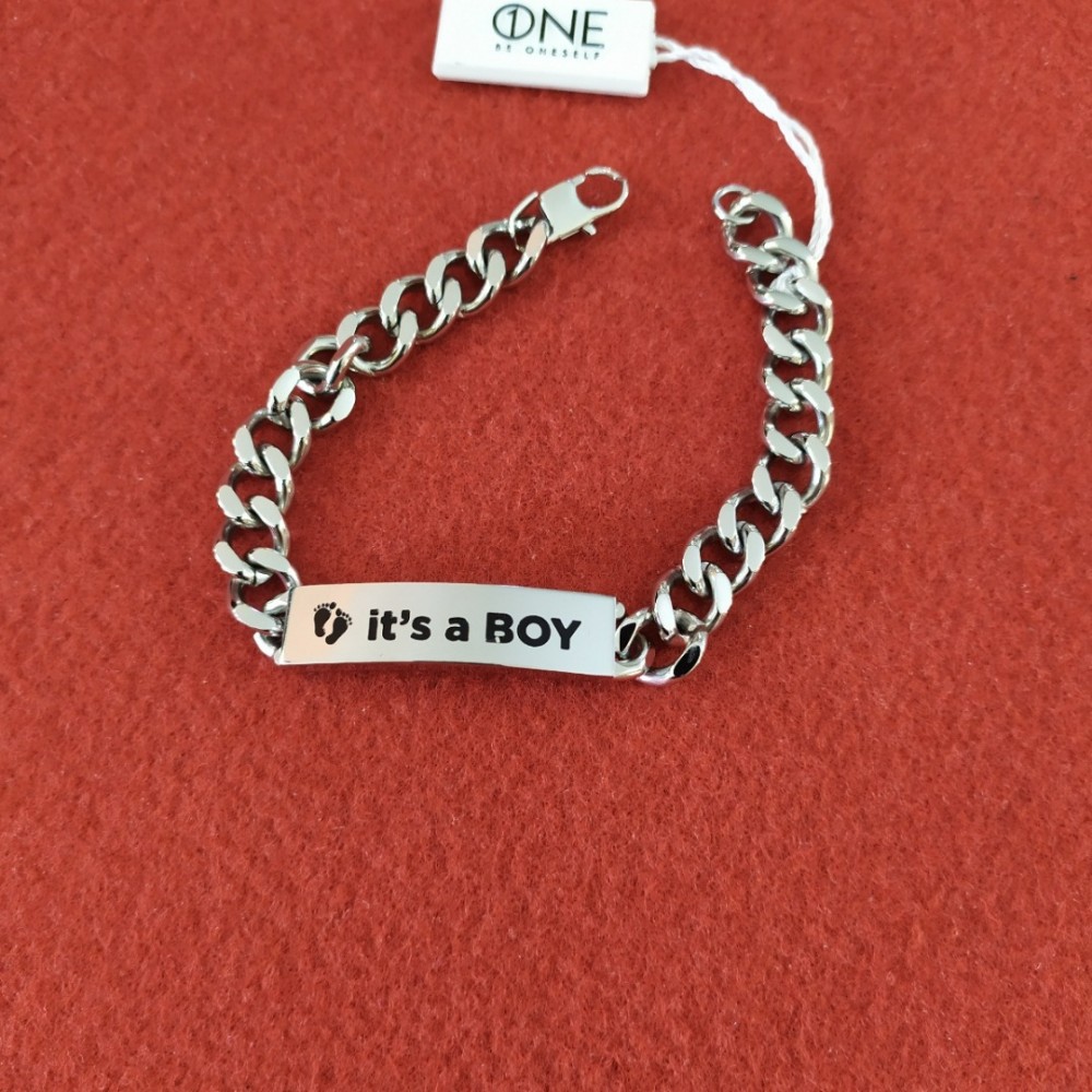 Bracciale UOMO a catena in acciaio anallergico "My story Its a boy" 21 cm - 1ONE GIOIELLI.