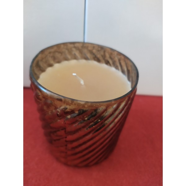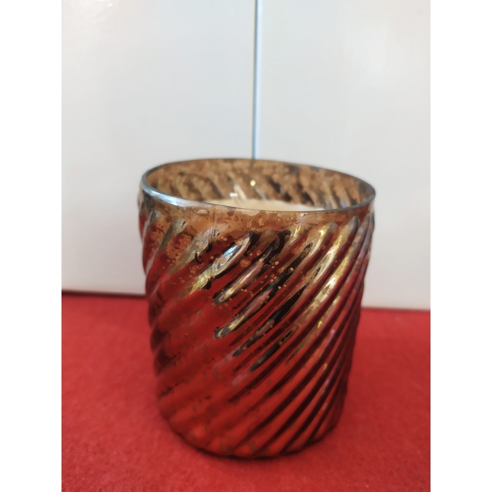 Candela alla vaniglia in vasetto "spirale" di vetro colorato anticato.