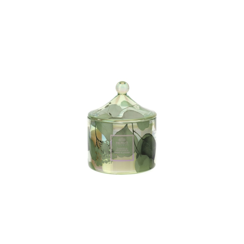Candela pagoda in vetro Verde cangiante 9,5x12 cm 280 gr profumazione Peony&litchee - HERVIT CREATIONS