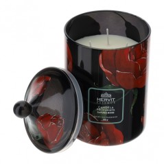 Custodita all'interno di un elegante vasetto in vetro nero, questo complemento d'arredo olfattivo sta bene in ogni ambiente di casa.