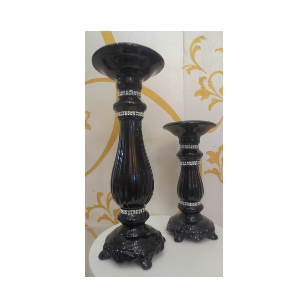 Candeliere in ceramica nero grande con strass 40 cm - EGO