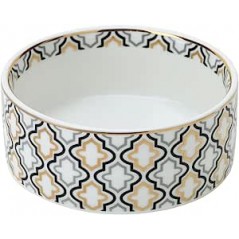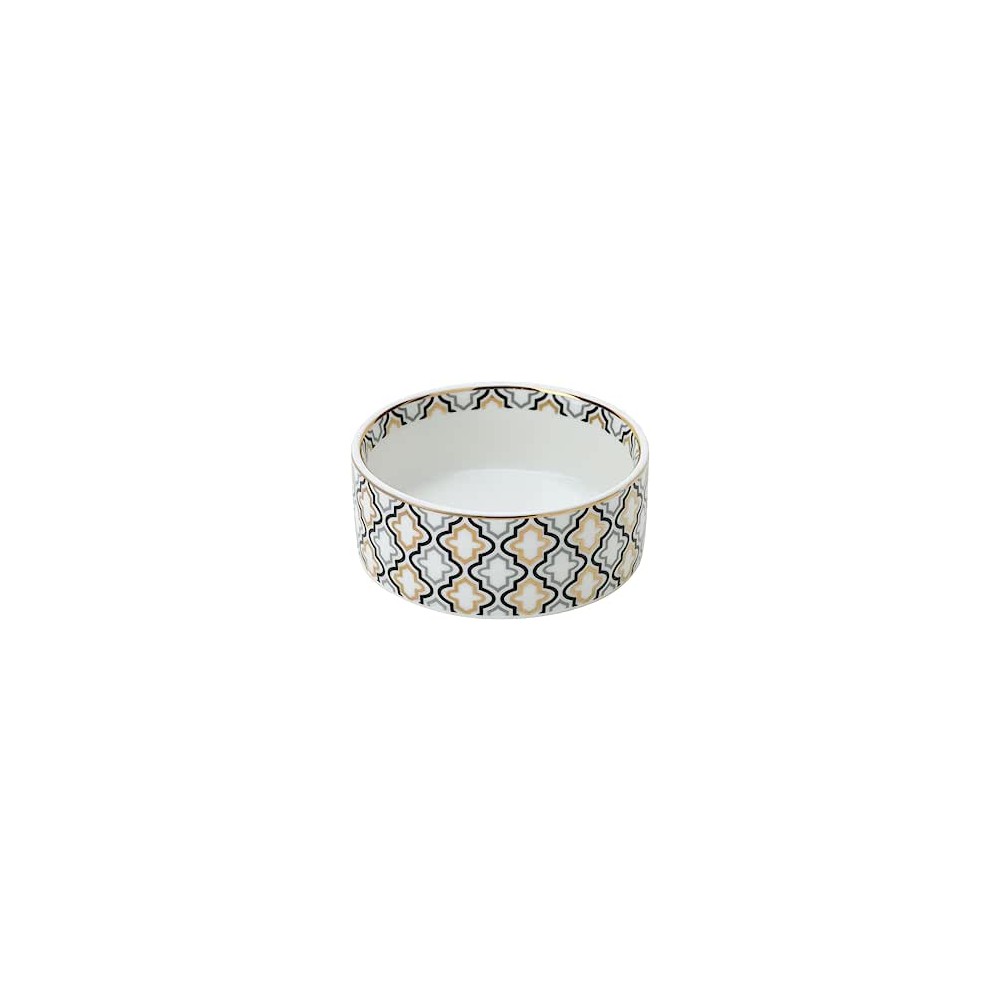 Meravigliosa ciotola con motivi geometrici, realizzata in porcellana New Bone China, in splendida confezione regalo marcata hervit.
