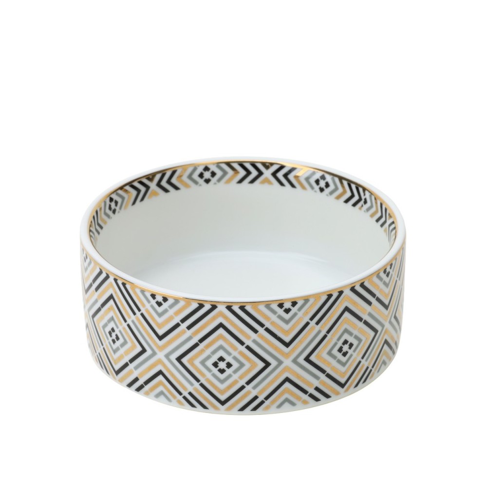 Ciotola rombi in porcellana Marrakech diam. 13 cm VLK design nero/grigio/oro - HERVIT CREATION.