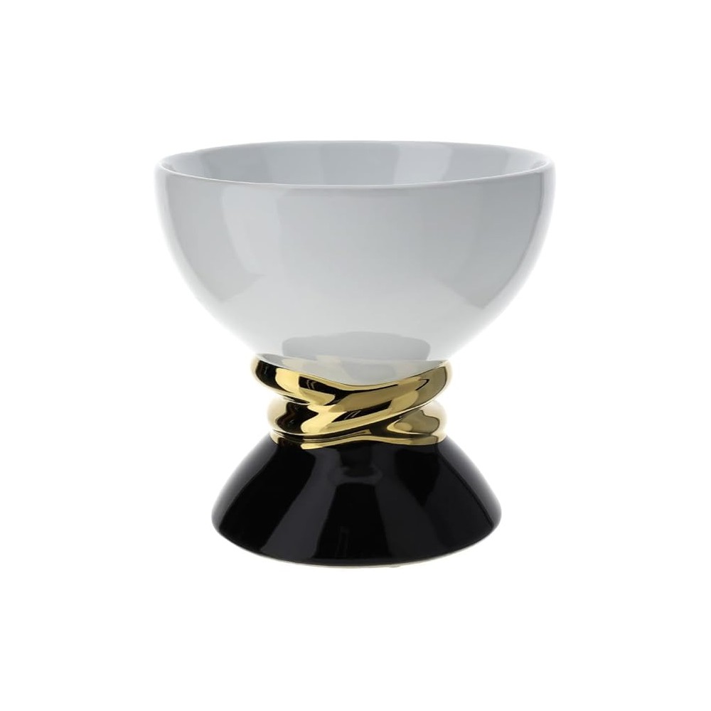 Ciotola Weaving in Porcellana Bianco e Nero con Intreccio Oro 20 cm - HERVIT CREATIONS.