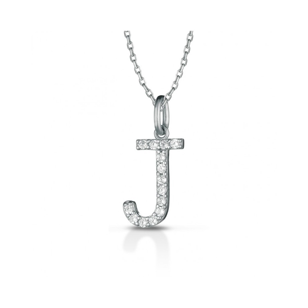 Collana in argento 925 "lettera J" con zirconi e catenina - 1ONE GIOIELLI.