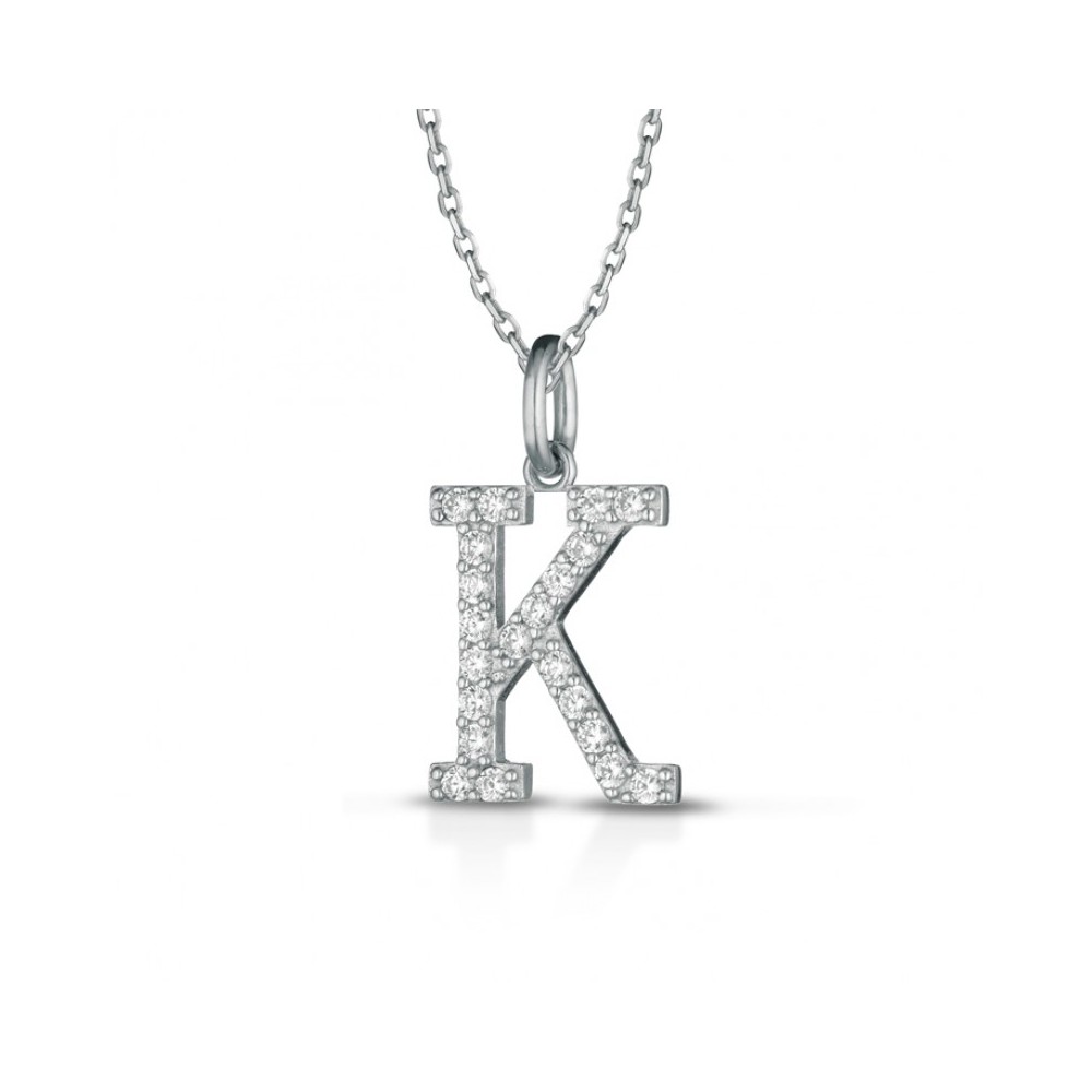 Collana in argento 925 "lettera K" con zirconi e catenina - 1ONE GIOIELLI.