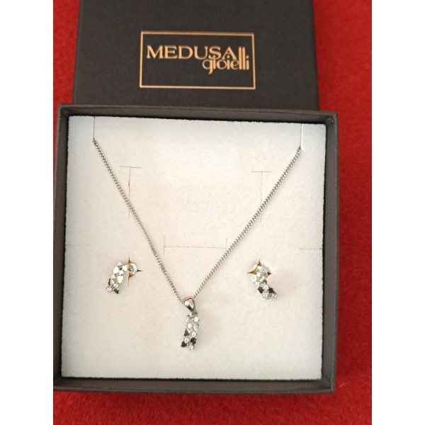 Collana Parure in argento 925 con zirconi 40 cm e orecchini - MEDUSA GIOIELLI.
