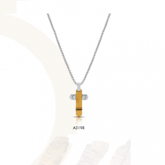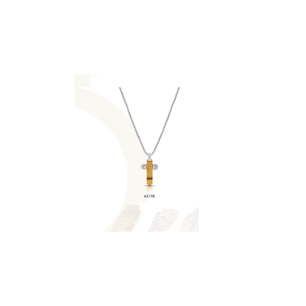 Collana UOMO modello maglia quadrata in acciaio con zirconi, croce bicolore dorata 50 cm - 1ONE GIOIELLI