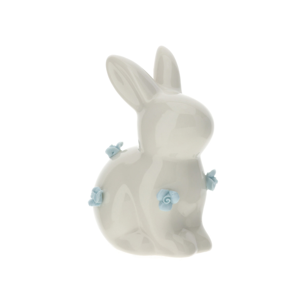 Coniglio in porcellana bianco c/fiori Blu 10 cm - HERVIT CREATIONS