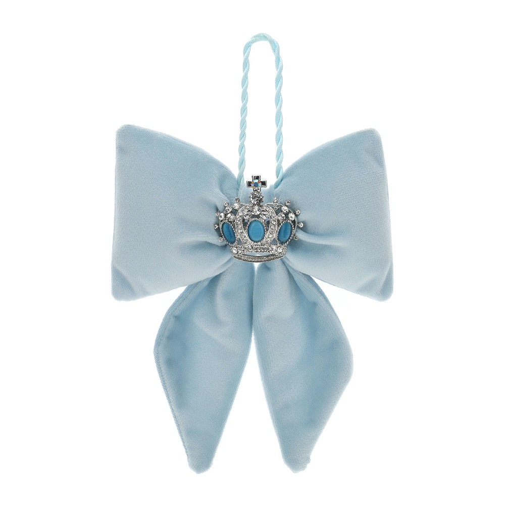 Fiocco app. in velluto blu con corona argento 14 cm - HERVIT CREATIONS