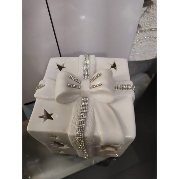 Gift box in porcellana con luce a led 12 cm.
