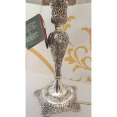 Lampada da tavolo in argento 925 sheffield "barocca" con paralume 50 cm - CHINELLI Italy