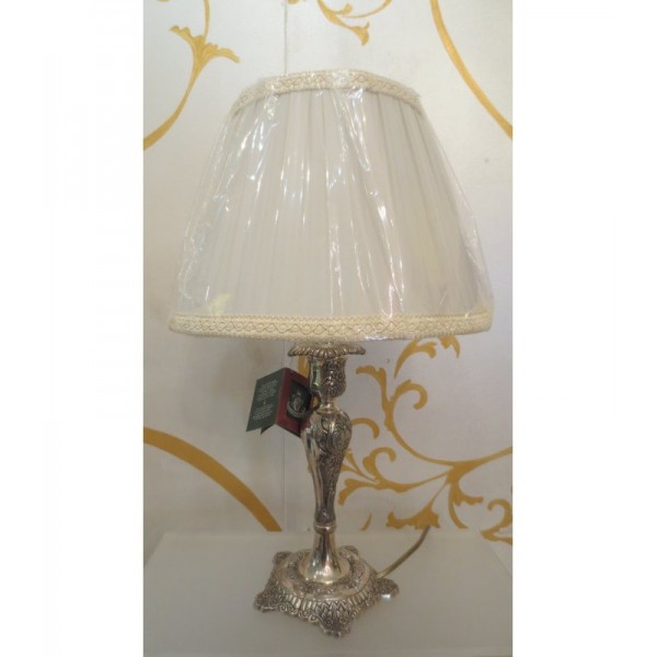 Lampada da tavolo in argento sheffield "barocca" con paralume 50 cm - CHINELLI Italy