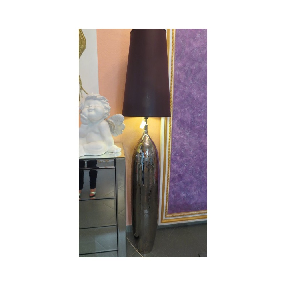 Lampada in ceramica con arabeschi bagno in platino 95% e paralume in seta 170 cm -CRESTANI CERAMICHE.