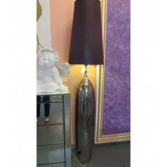 Lampada in ceramica con arabeschi bagno in platino 95% e paralume in seta 170 cm -CRESTANI CERAMICHE