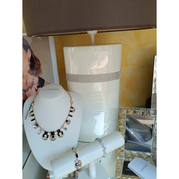 Lampada in ceramica ovale con strascia swarovsky paralume nero 72 cm - PIERRE CARDIN.