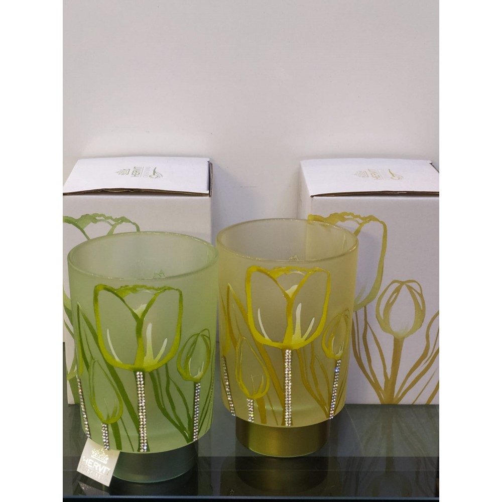 Lampada in vetro Tulip Giallo diam.10 x 16 cm con strass swarovsky e lampadina led luce calda - HERVIT CREATIONS