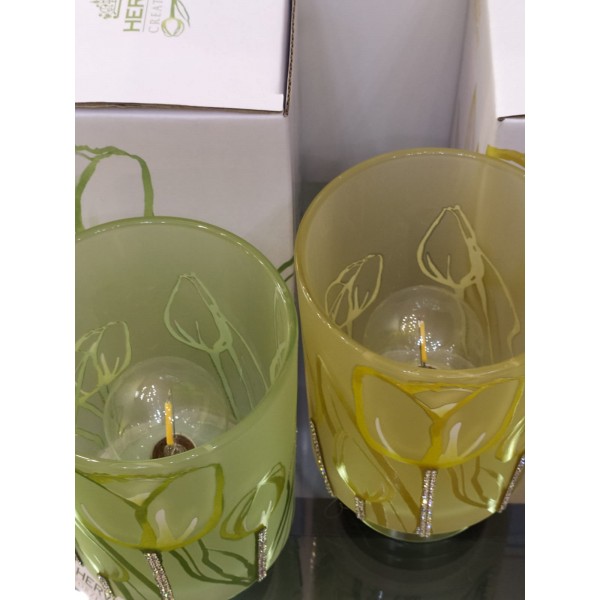 Lampada in vetro Tulip Giallo con strass swarovskye e lampadina led luce calda base frozen - HERVIT CREATIONS.