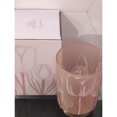 Lampada in vetro Tulip Rosa con strass swarovsky, diam.10 x 16 cm, c/lampadina led luce calda - HERVIT CREATIONS