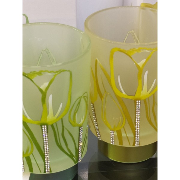 Lampada in vetro Tulip "Verde" 15 cm con strass swarovsky e lampadina led - HERVIT CREATIONS.
