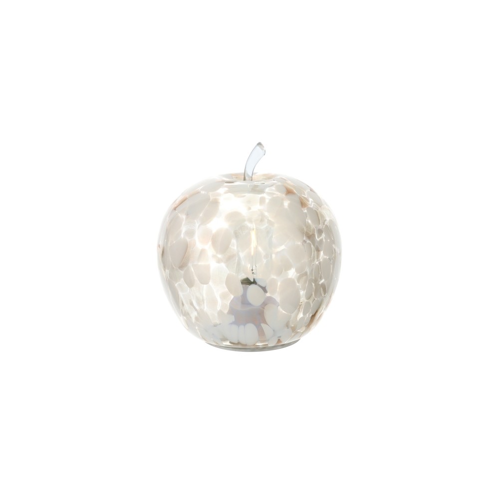 Illumina i tuoi spazi con eleganza e stile grazie alla lampada LED a forma di mela, realizzata in raffinato vetro trasparente con decoro bianco e oro è prodotta da Hervit.La luce LED interna garantisce un'illuminazione delicata ed efficiente, ideale per momenti di relax o per aggiungere un tocco di calore alle tue serate.