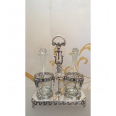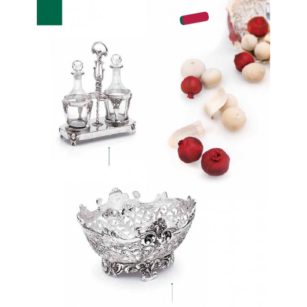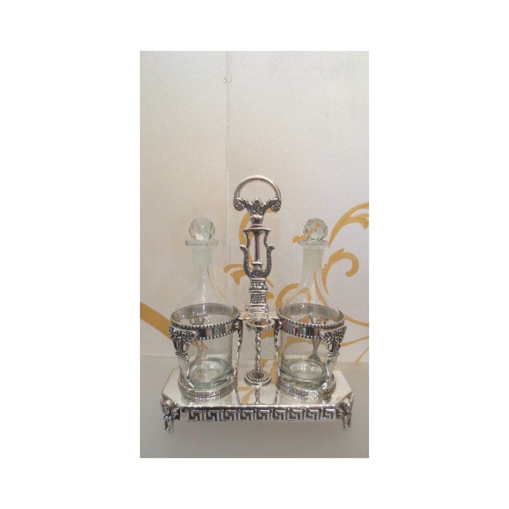 Menage/oliera lavorata in argento sheffield con ampolle vetro 29 cm - CHINELLI Italy