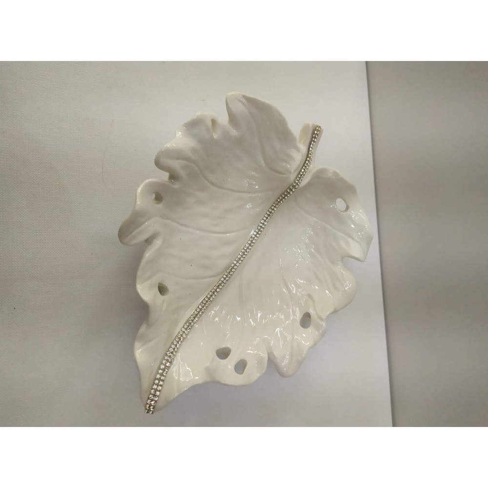 Milleusi svuotatasche foglia in porcellana bianca e strass swarovsky 18 cm.