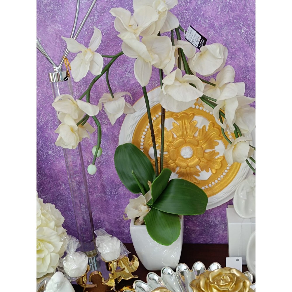 Orchidea Phaleonopisis due rami in vaso bianco 70 cm.