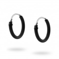 Orecchini a cerchio UNISEX con smalto nero in ARGENTO 925 - MADE IN ITALY