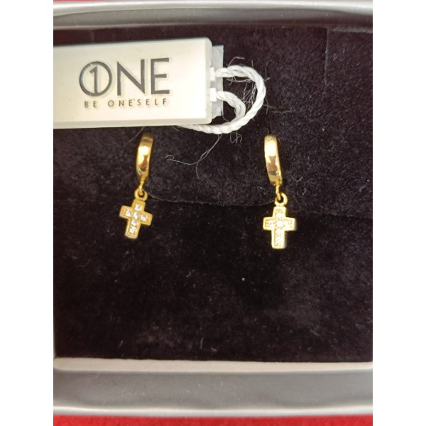 Orecchini Cerchio DONNA mm 12 con croce pendente e Zirconi bianchi in ARGENTO - 1ONE GIOIELLI