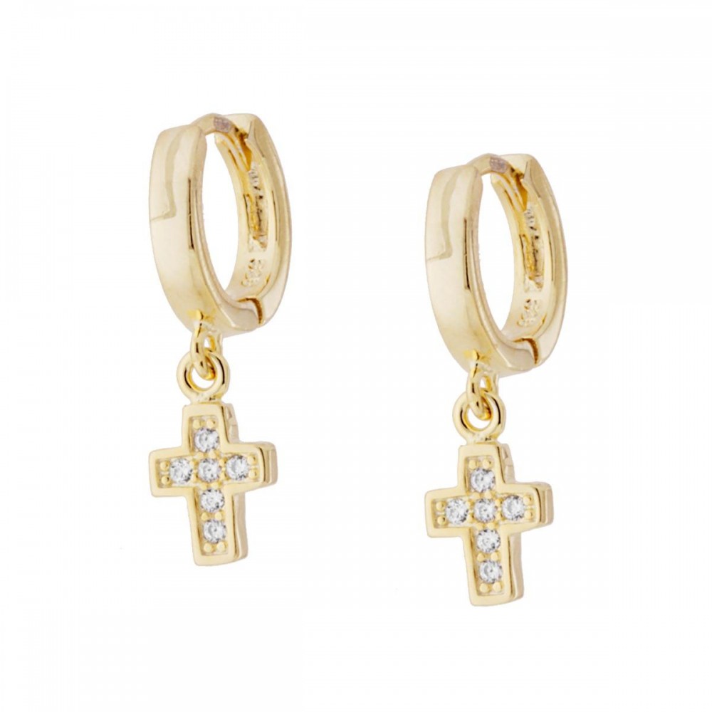 Orecchini Cerchio con accessorio pendente a forma di croce con zirconi bianchi incastonati