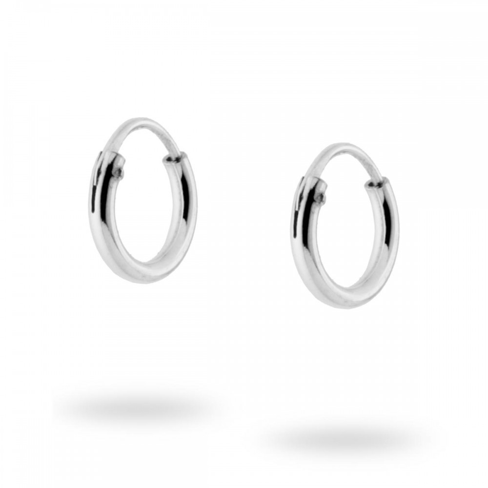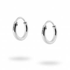 Orecchini a forma di cerchio a canna e sezione tubolare con lavorazione liscia e lucida.