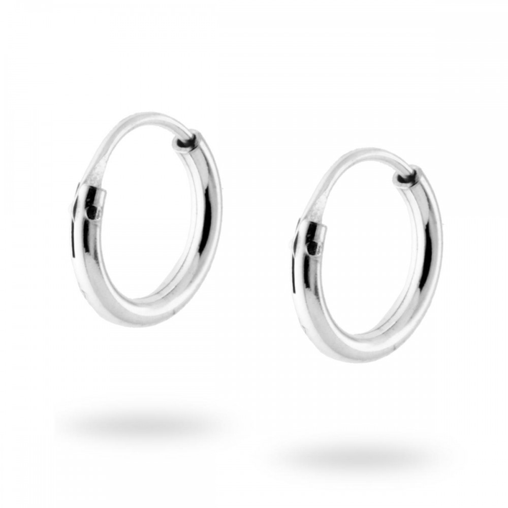 Orecchini a forma di cerchio a canna e sezione tubolare con lavorazione liscia e lucida.