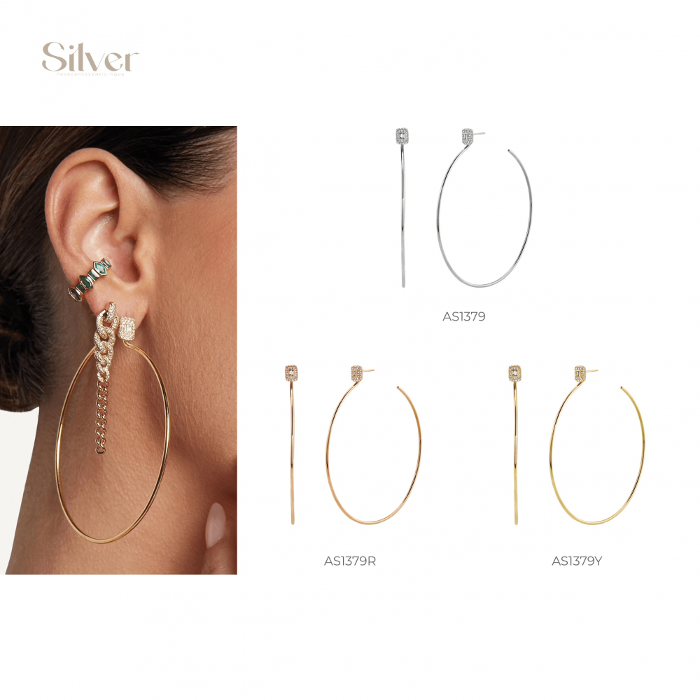 Orecchini DONNA a cerchio in argento 925 con zirconi - 1ONE GIOIELLI