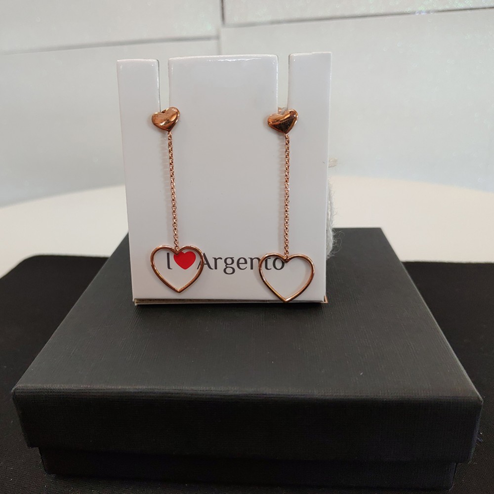 Orecchini donna in argento 925 rosè con cuore pendente - MEDUSA GIOIELLI.